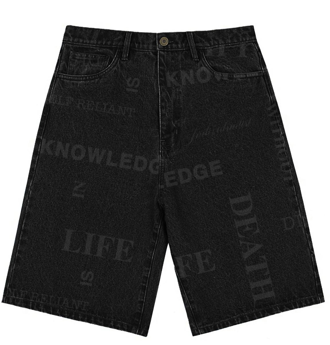 Individualist “Knowledge Laser Print" Black Denim Shorts